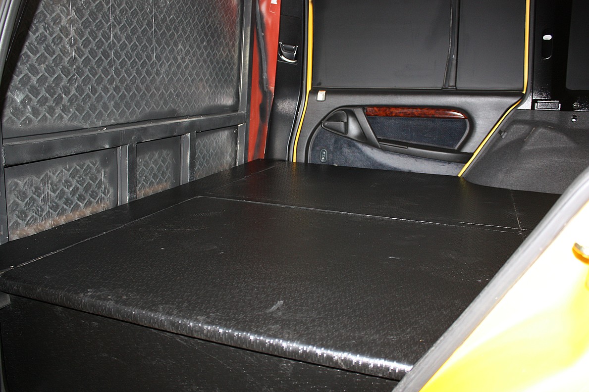 Die Bodenplatten sind jetzt mit Leder in Carbonoptik bezogenund die